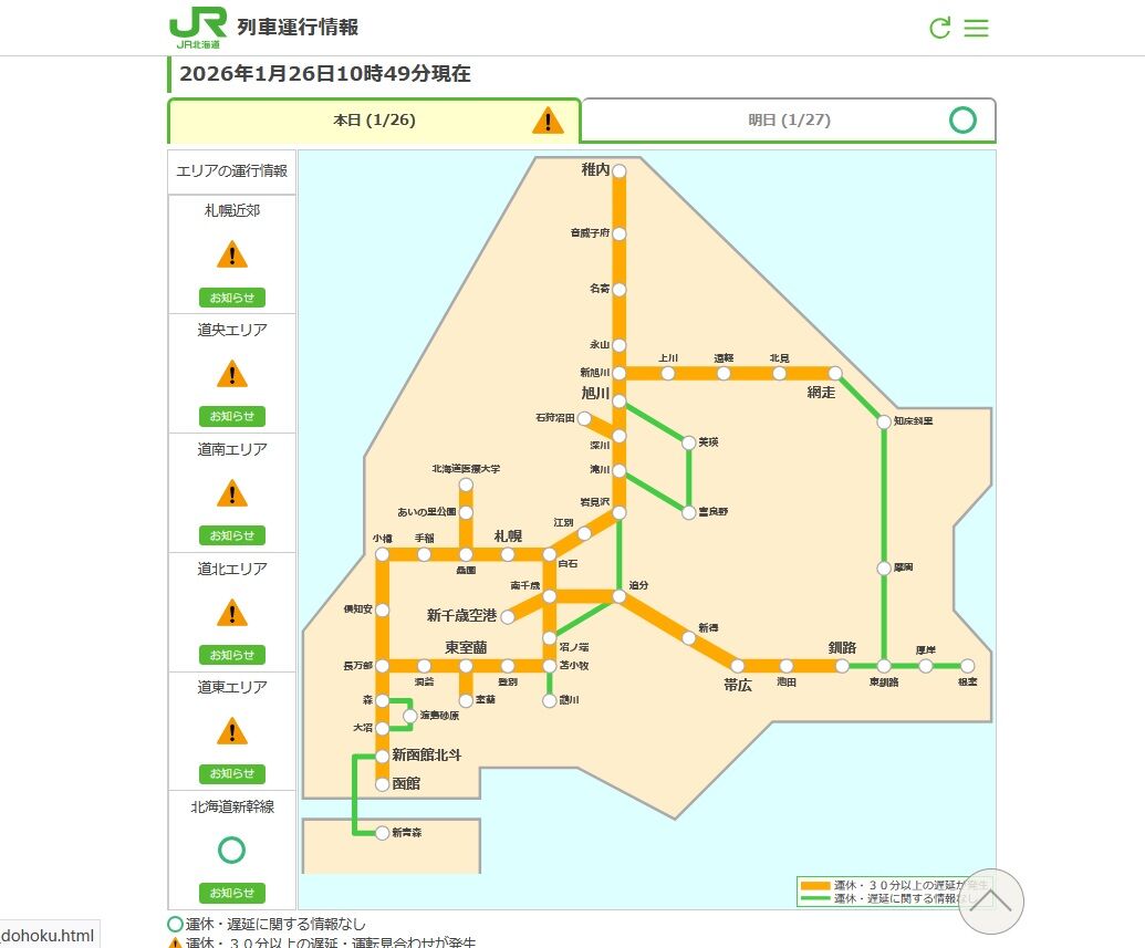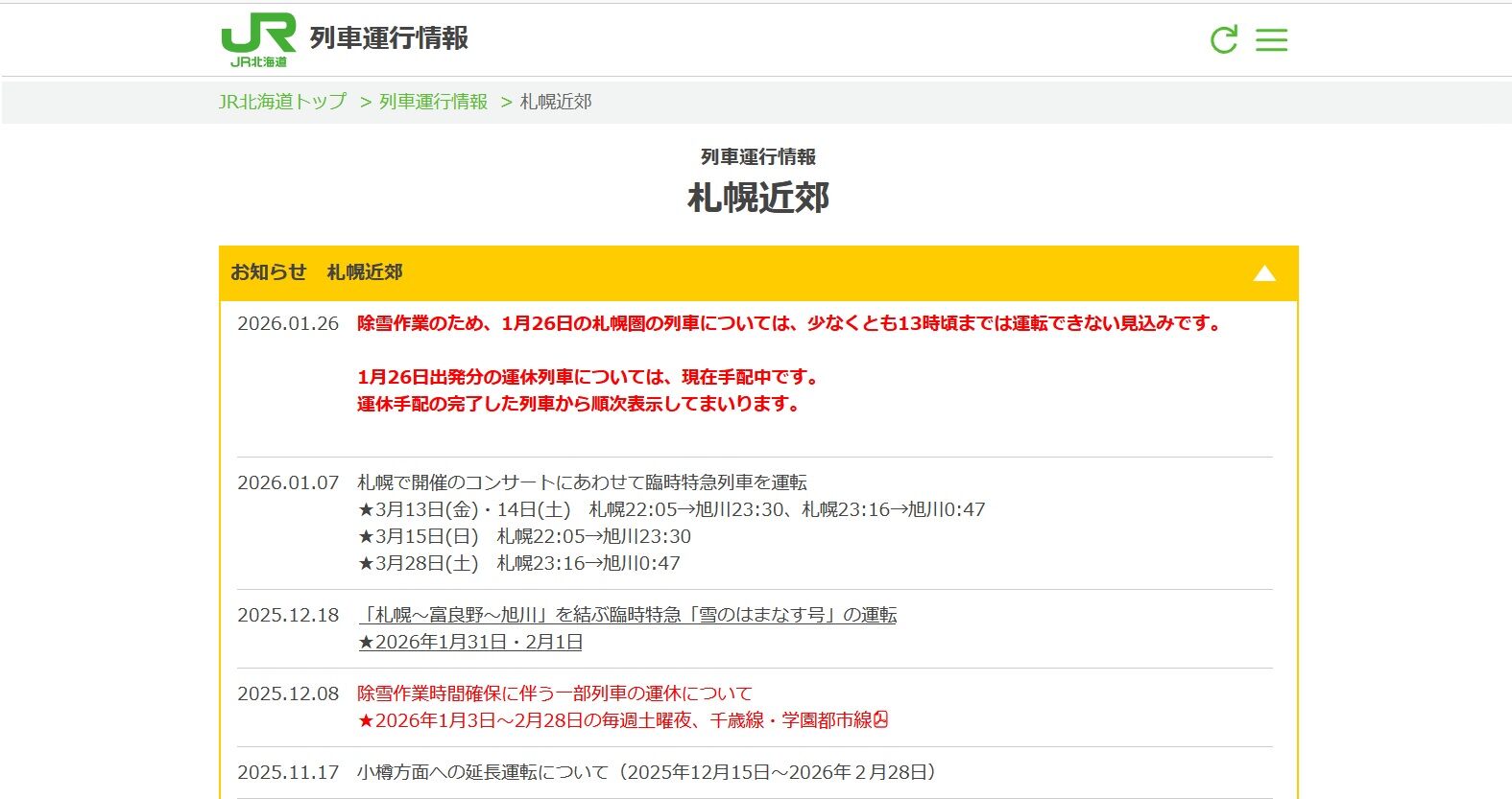 この朝の時点では、実際に運休する列車が何かは発表されていなかった。