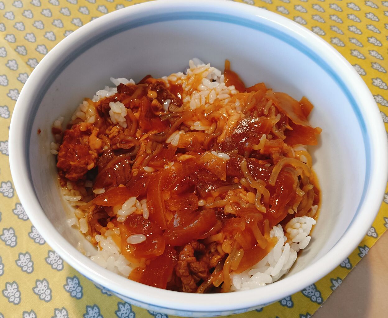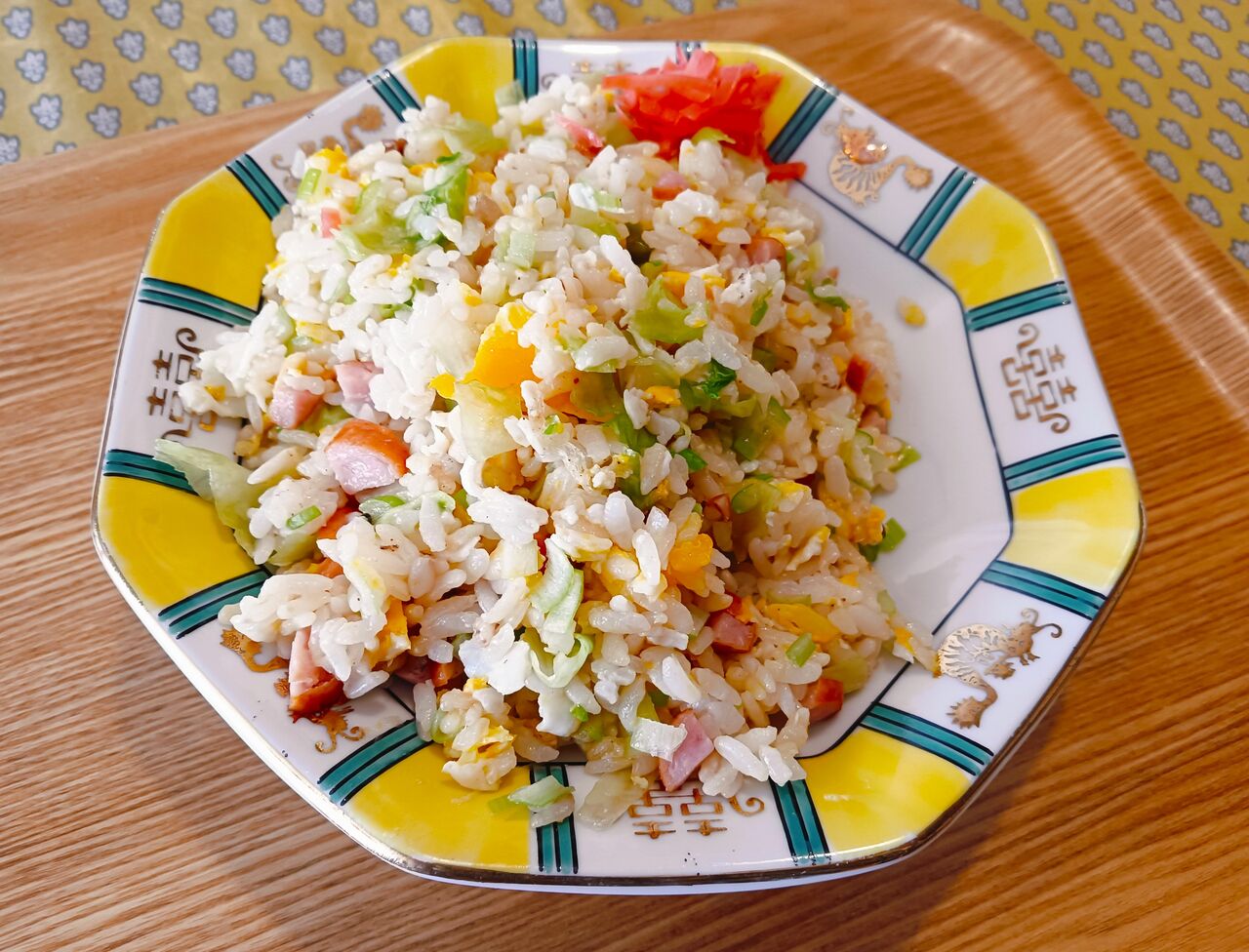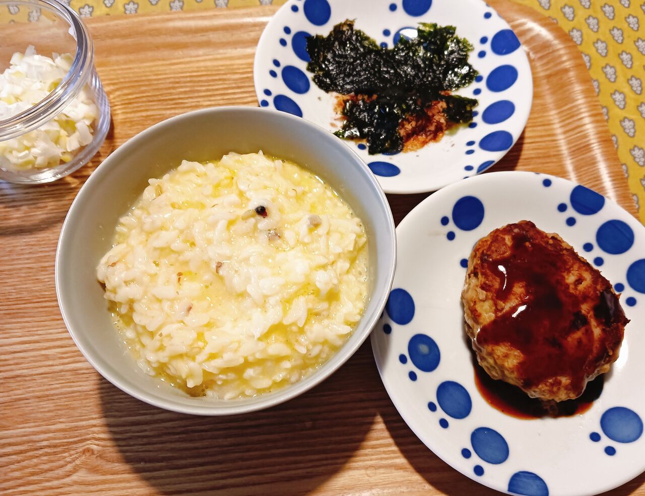 前日のチャーハンとは打って変わって、この日の朝食で作って食べたのはあっさりと玉子粥。でも、おかずは前日に作ったハンバーグ!。