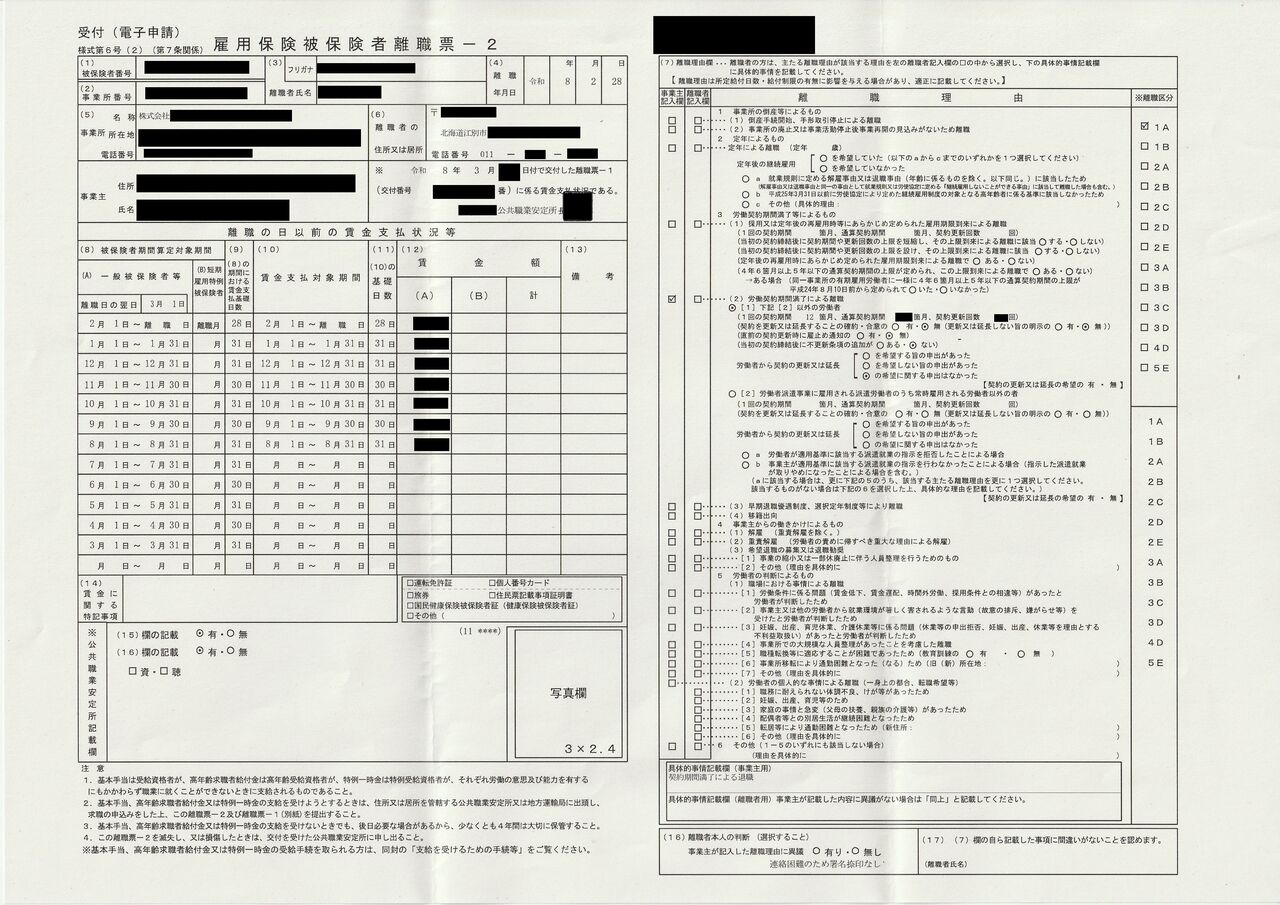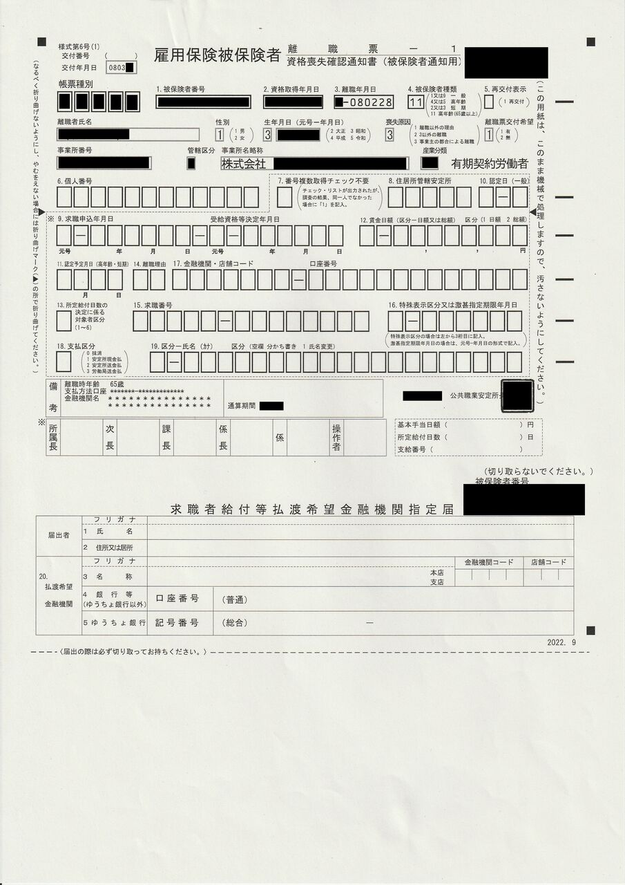 先々週の週末に、ようやく勤めていた会社の本社から、私の『離職票』(離職票-1と離職票-2)が届いた。