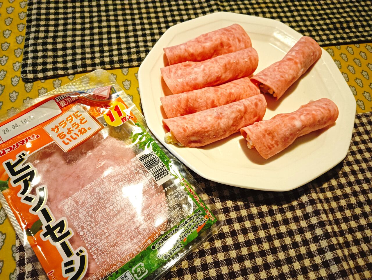 きょうの本館の話題は、アルフレッドさんとの飲み会計画がようやく成就したことについてです。 アルフレッドさんと私の、仕事での付き合いを超越した感動秘話をぜひお読みください(←感動の感じ方には著しく個人差があります)。 ところで、スーパーの惣菜(総菜)コーナーで売られているハム巻きポテトサラダ。 私はあれがけっこう好きだ。 でも、ハムよりもビアソーセージで巻いたものの方が、もっと好きだ。 ということで、惣菜のポテトサラダとプリマハムのビアソーセージ(薄切りタイプ)を買ってきて、自分で巻いて作った。 予想どおり、ハイボールにひどく合った。 |