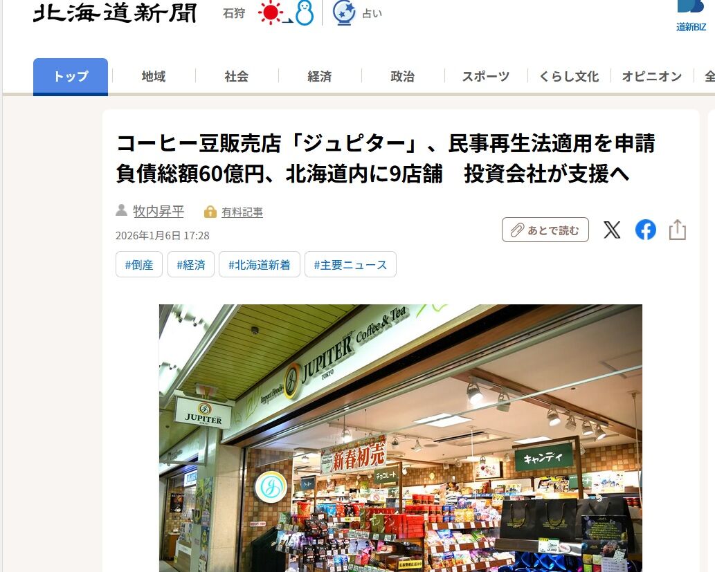 知床どり代償行為としてとり五目おむすび 仕事始めとなった今週の月曜日。 「さてと今日の昼ごはんは何にしようかな」と、エアポート編成だった 130M 列車の u シート車両に座っていた私は、出社日の唯一の楽しみである昼食のことに思いを巡らせていた。 そうだ。景気良く奮発して駅弁を買って食べよう。 久しぶりに「 知床とりめし」を買っちゃおう。 そして、一応価格を確認するために、札幌駅立売商会(弁菜亭)のホームページを見てみた。 ……「知床とりめし」の姿はなかった。 いつの間にか ――といっても、もう1年半ほどこの駅弁を目にしていないので最近のことなのかどうかもわからない―― 私の『お気に』のとりめしは終売となっていた。けっこうなロングセラー弁当だったと思うのだが、残念だ。 失意の私は札幌駅に着いたあと改札内の「 弁菜亭ラッチ南店」を覗くこともなく、そのまま通勤路の途中にあるファミリーマートに寄り、「ごまニンニク醤油だれで食べるから揚げ弁当(高菜ごはん)」を買った。 このチルド弁当を買うのは二度目だ。 ファミマと東洋水産が共同開発したという「ふわふわたまごのスープ」も買った。 さらに、そのあとセブンイレブンに寄って、とり五目おにぎりも買った。「知床とりめし」の思い出のために、代償的行為として。 いやぁ~マンプク、マンプク。マンゾク、マンゾク。 そしてこの直後、食べ過ぎた私はちょっぴりおなかをこわした。 帰りに昨年末で閉店した札幌駅改札内のロッテリアの写真を記念に撮った。 ♪ MUUSAN の今日の一曲 ♪ 昨日の北海道新聞に「ジュピター」が民事再生法適用を申請したという記事が載っていた(写真は電子版の「道新デジタル」)。 コーヒーの価格が高騰し顧客離れが進んだのも経営悪化の一つの要因らしい。こうなんでもかんでも値上がりすると、確かに嗜好品は買わなくなるよなぁ。 モーツァルト(Wolfgang Amadeus Mozart 1756-91 オーストリア)の 交響曲第41番ハ長調K.551「 ジュピター(Jupiter)」(1788)。