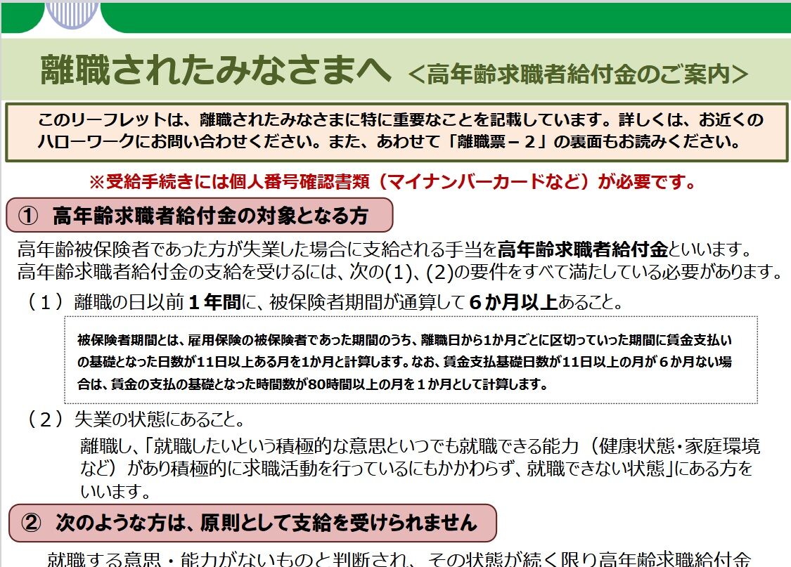 求職の申し込みをするためである。この手続きをしないと、職が見つからない場合の『高年齢求職者給付金』が支給されない。
