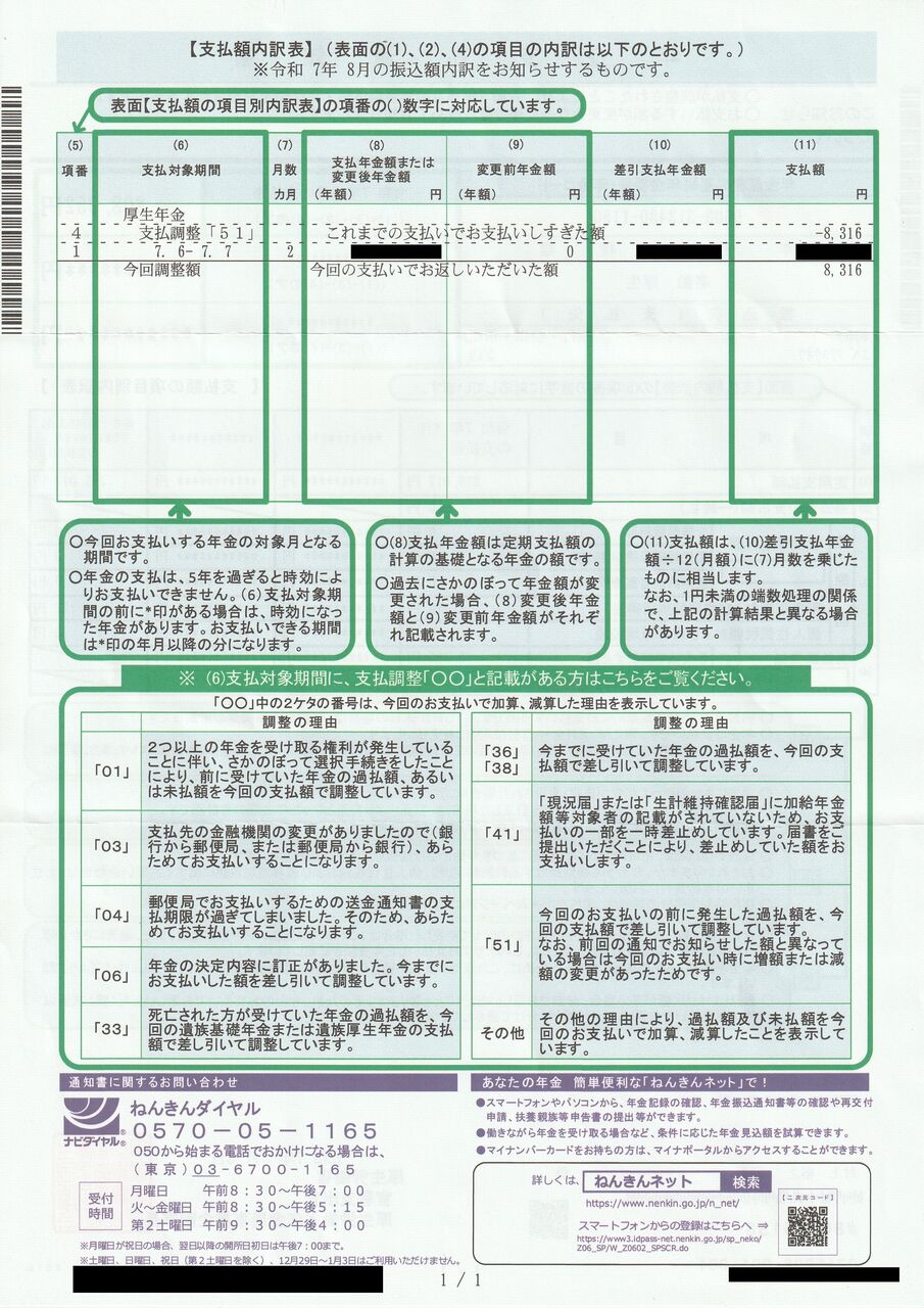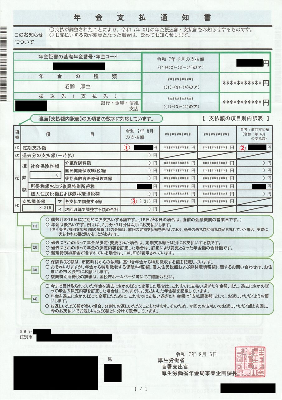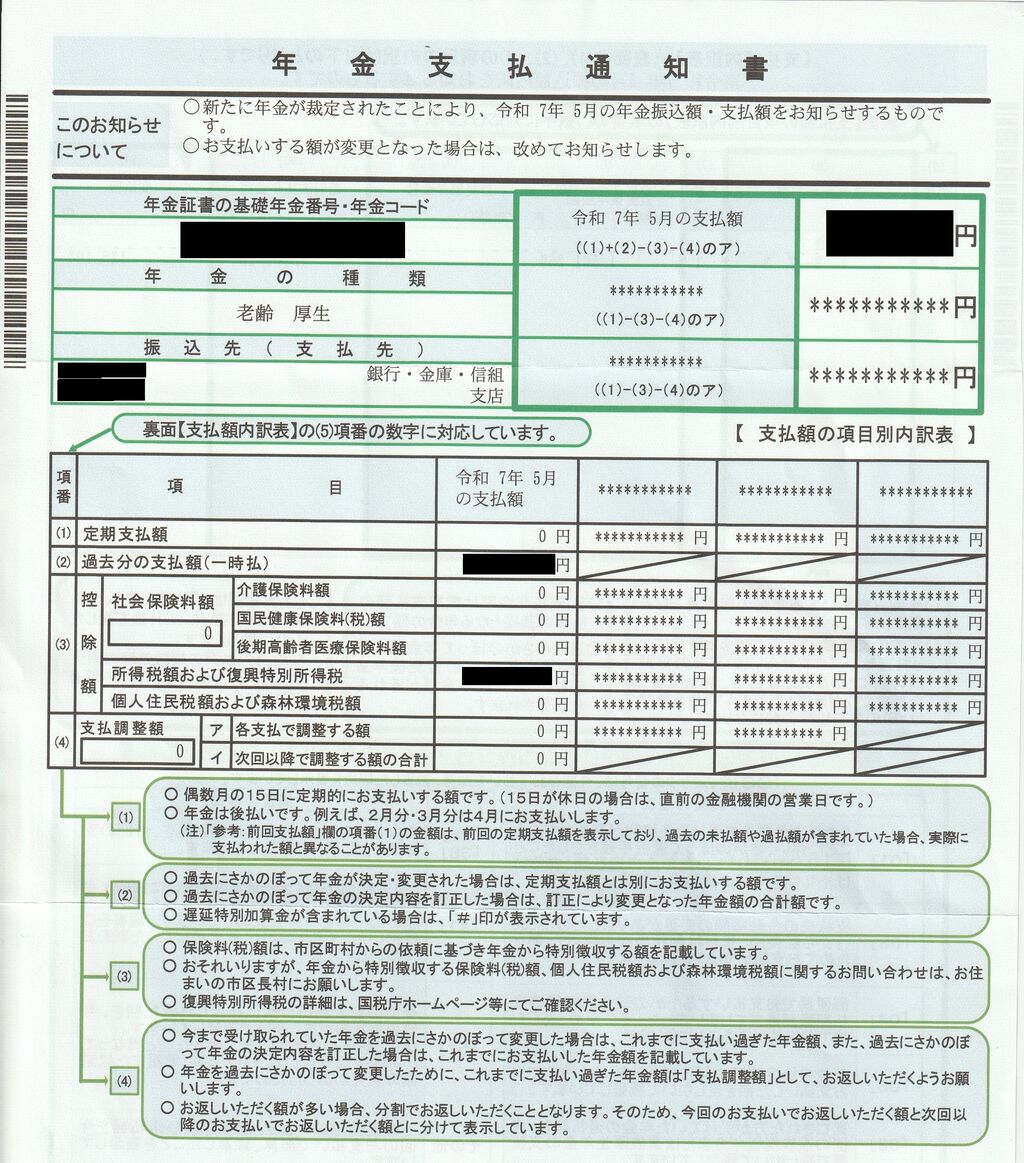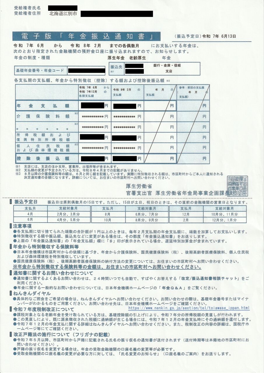 初めての年金支払額は給付金による停止額が未反映、そして不気味な後頭部