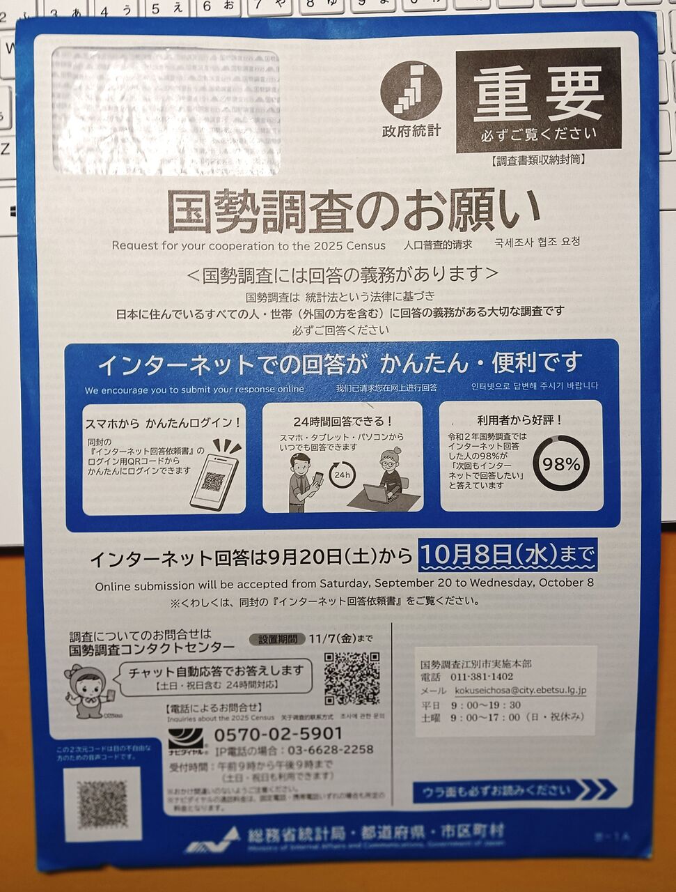 ![]() ![]() 今日、新館を休むわけにはいかぬ マニアックな人ならご存知のことだが、毎月1日と16日にこのブログ『読後充実度 84ppm のお話』を更新している。 更新しているのが虚しくなるほど人気がないのだが(『にんき』だけでなく『ひとけ』もない)、それでも律義に2回は更新している。 だが、今日はそのルールを犯して、こちらの記事は更新しない(って、こう書いてる時点で更新していることになるんだけど)。 というのも、新館記事(新・読後充実度 84ppm のお話)では、現在私の新型コロナ感染記を載せている最中で、それを義理も人情もあったもんじゃなく「10月1日は本館更新日なので、新館はお休み」などとお役所のようなことを言ってられないからである。 お役所といえば、みなさん「国勢調査」への回答はお済だろうか? 私は済んだ(← 自慢げ)。 ネットで回答した。 締め切りまであと一週間である。 みなさんお忘れないように。 |