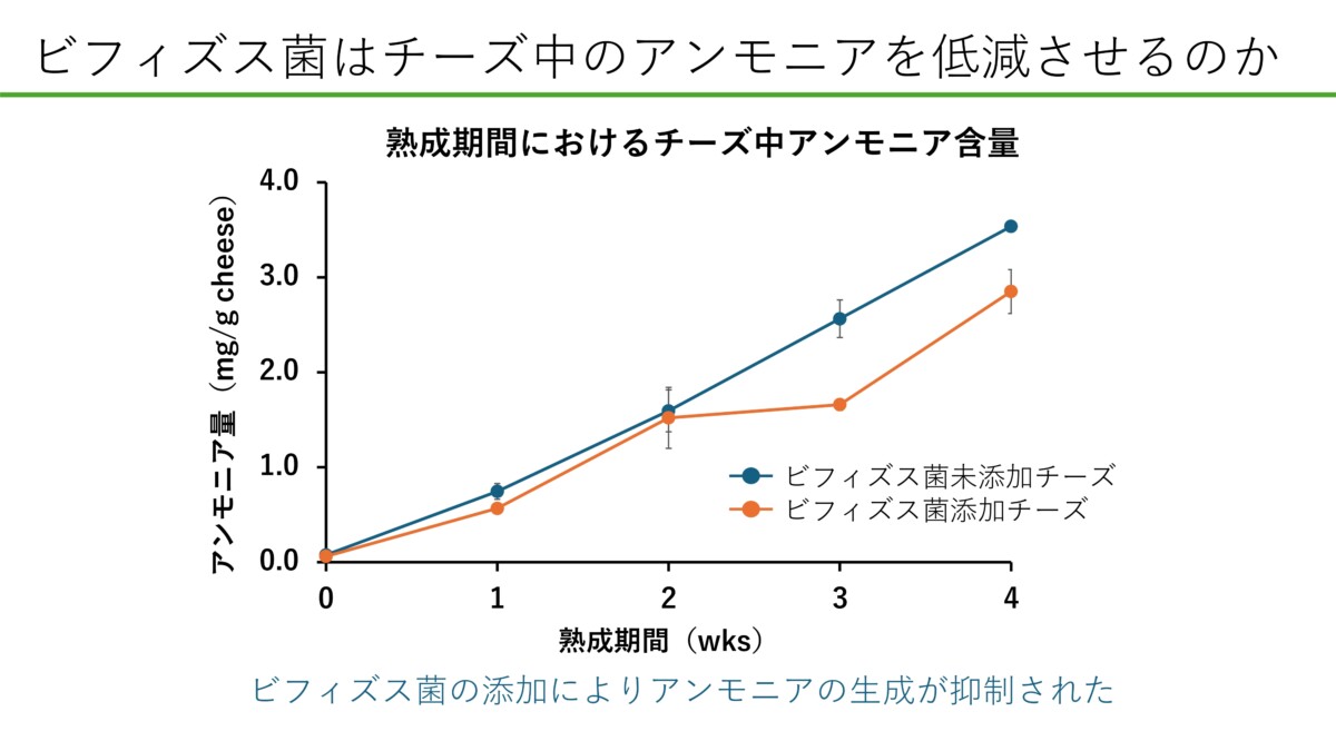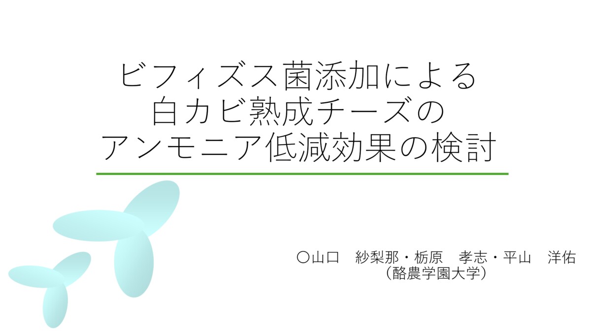 発表題名:ビフィズス菌添加による白カビ熟成チーズのアンモニア低減効果の検討