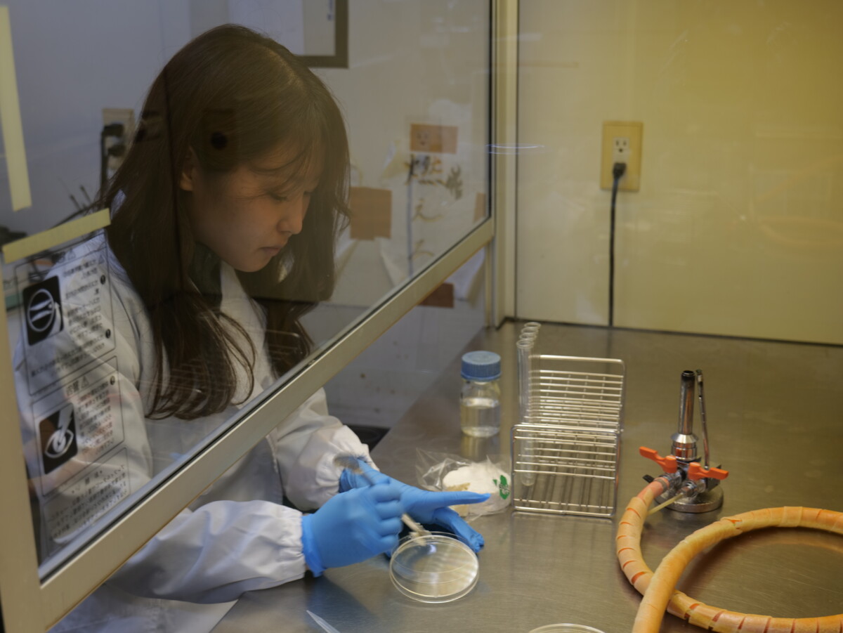 この研究は昨年から準備を行い、今年の4月から解析を進めてきました。どの菌株がアンモニアを減らす効果があるのか検証するため、基礎データ作りに試行錯誤を繰り返しました。今後の山口さんの研究は、研究データ収集に協力している研究室の3年生へと引き継がれていきます。山口さんは卒業後、北海道の乳製品製造企業へ就職し、ヨーグルト・チーズ・アイスクリーム・牛乳などの商品開発に携わります。